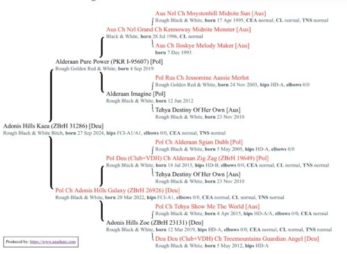 Hündin, Rufname „Kara“, black/w.; geboren am 27.09.2024